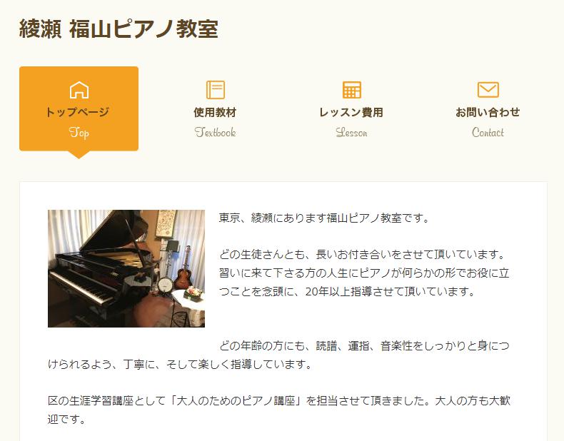 てらちゃんピアノ教室は、50代の男性講師が知人からの勧めで開いたピアノ教室。