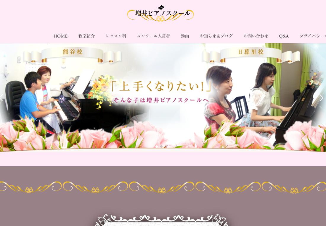 『「上手くなりたい」方は増井ピアノスクール・日暮里校へ』のキャッチコピーが目を引くピアノ教室。