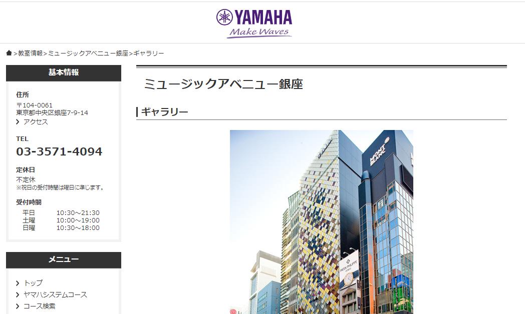 ミュージックアベニュー銀座はヤマハが運営している音楽教室で、ピアノは中学生以上が対象。