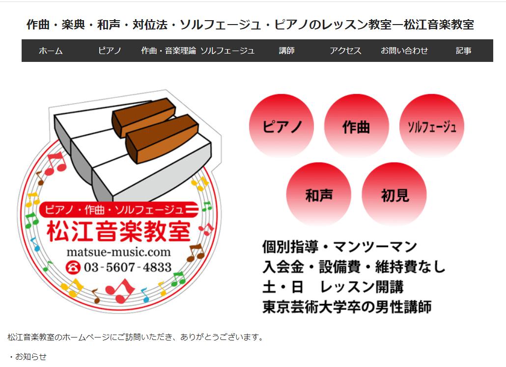 松江音楽教室は、東京芸術大学卒の男性講師の方が開室した音楽教室。