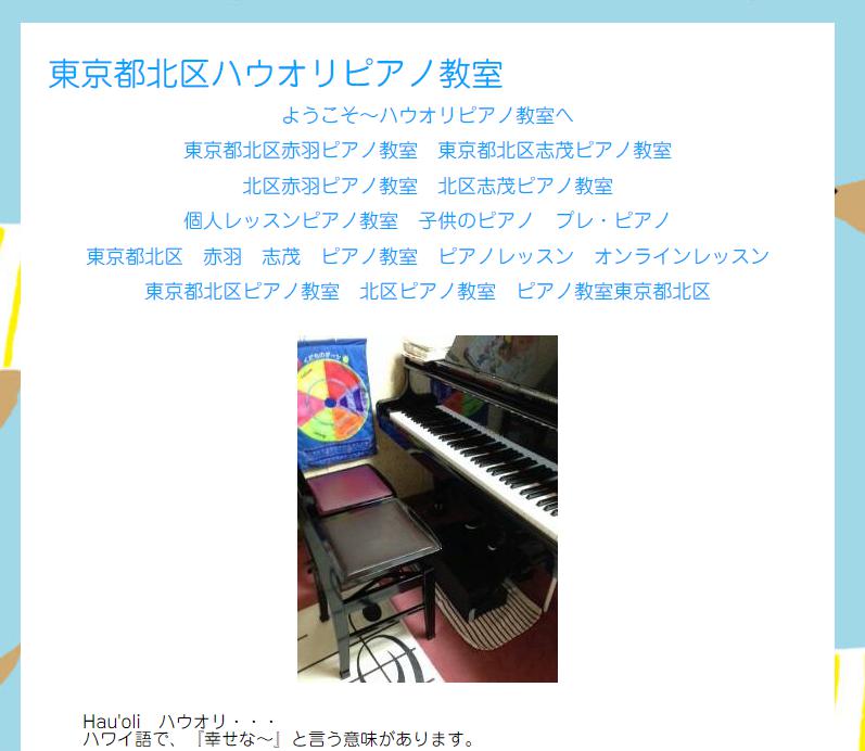 ハワイの言葉で「幸せな〜」を意味する「ハウオリ」の名前が付いたピアノ教室。