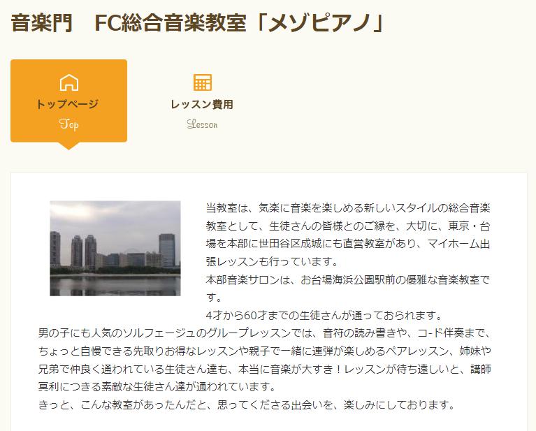 有明テニスの森のおすすめピアノ教室・ランキング10位は音楽門 FC総合音楽教室 メゾピアノです。