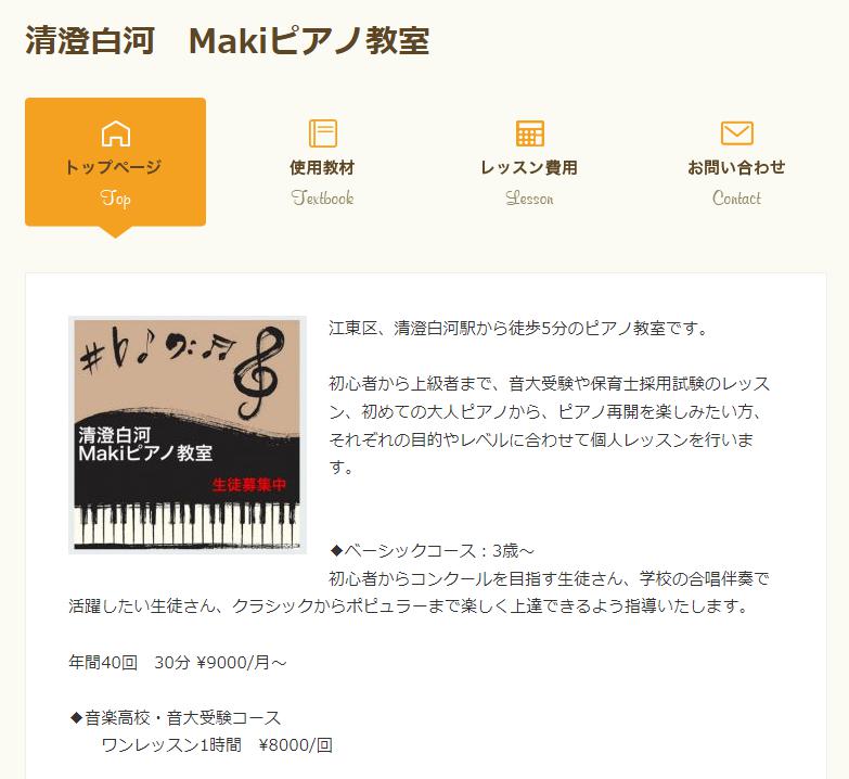 清澄白河のおすすめピアノ教室・ランキング8位はMakiピアノ教室です。