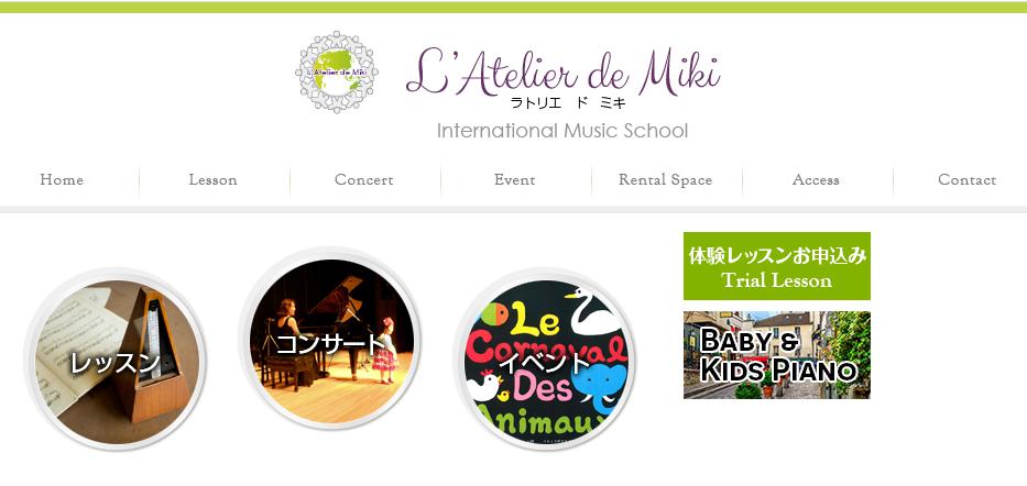 L'Atelier de Miki(ラトリエ ド ミキ)は、子供、大人、シニアの方まで、ピアノ、ヴァイオリン、フルート、チェロなどが学べる音楽学校。