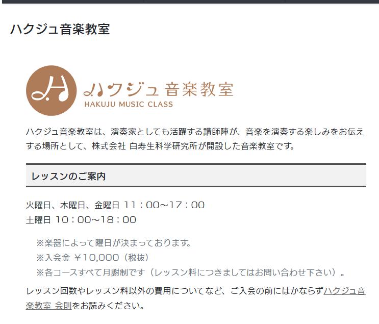 ハクジュ音楽教室は、代々木八幡駅から徒歩5分、株式会社 白寿生科学研究所が開設した音楽教室。