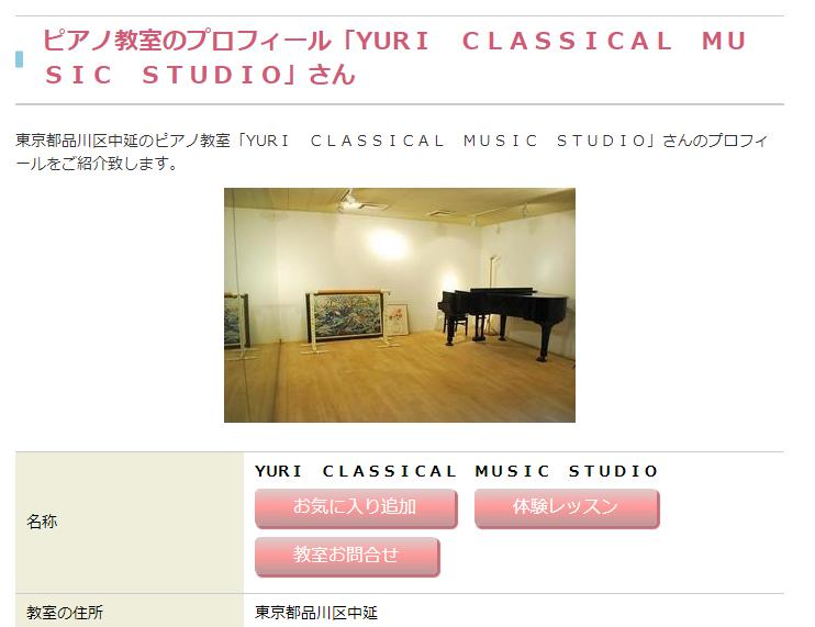 中延のおすすめピアノ教室・ランキング8位は、YURI CLASSICAL MUSIC STUDIOです。