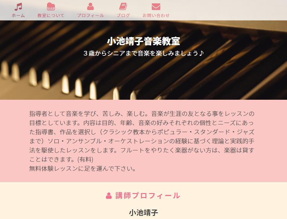 小池靖子音楽教室は、3歳からシニアまでを対象としたピアノとフルートのお教室。