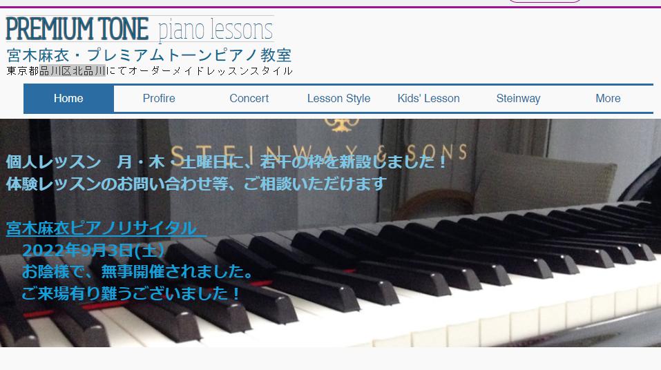 宮木麻衣・プレミアムトーンピアノ教室は、ピアニスト・音楽大学非常勤講師として活躍している宮木先生のピアノ教室。