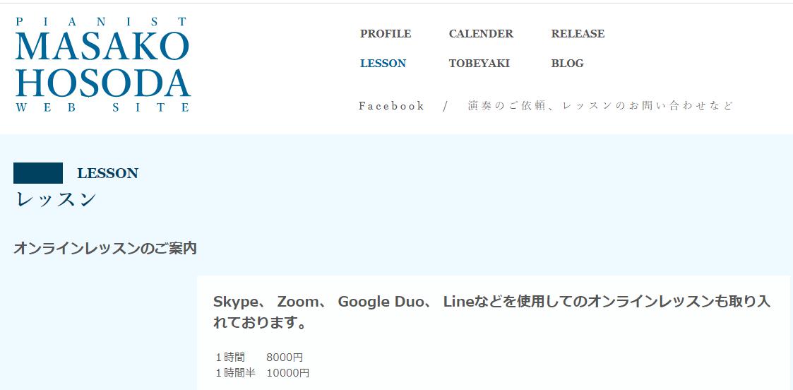 細田先生はカワイ横浜で月に2回ピアノレッスンを行っていますが、ご自宅でも1レッスン制でピアノの指導をしています。