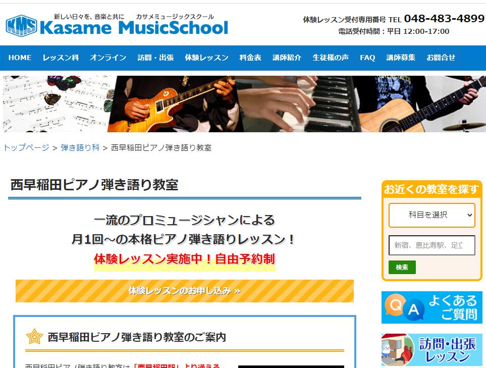 西早稲田のおすすめピアノ教室・ランキング4位はカサメミュージックスクール 西早稲田ピアノ弾き語り教室です。