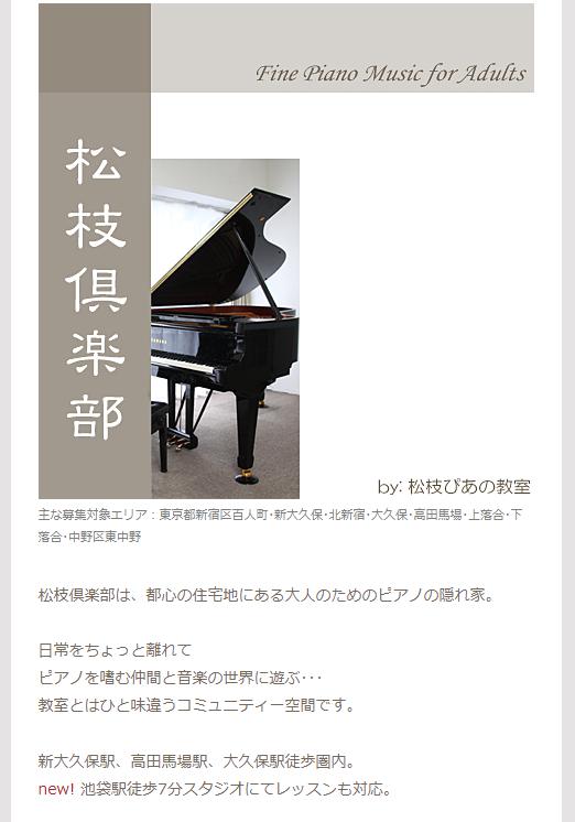 松枝倶楽部は、子供向けピアノ教室「松枝ぴあの教室」を運営されている松枝先生が、大人の方(高校生以上)向けに作られたコミュニティー空間。