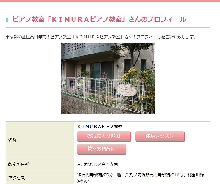 高円寺のおすすめピアノ教室・8つ目は、KIMURAピアノ教室です。