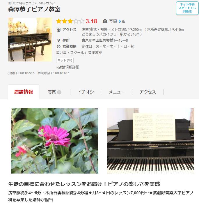 本所吾妻橋のおすすめピアノ教室・ランキング7位は森澤恭子ピアノ教室です。