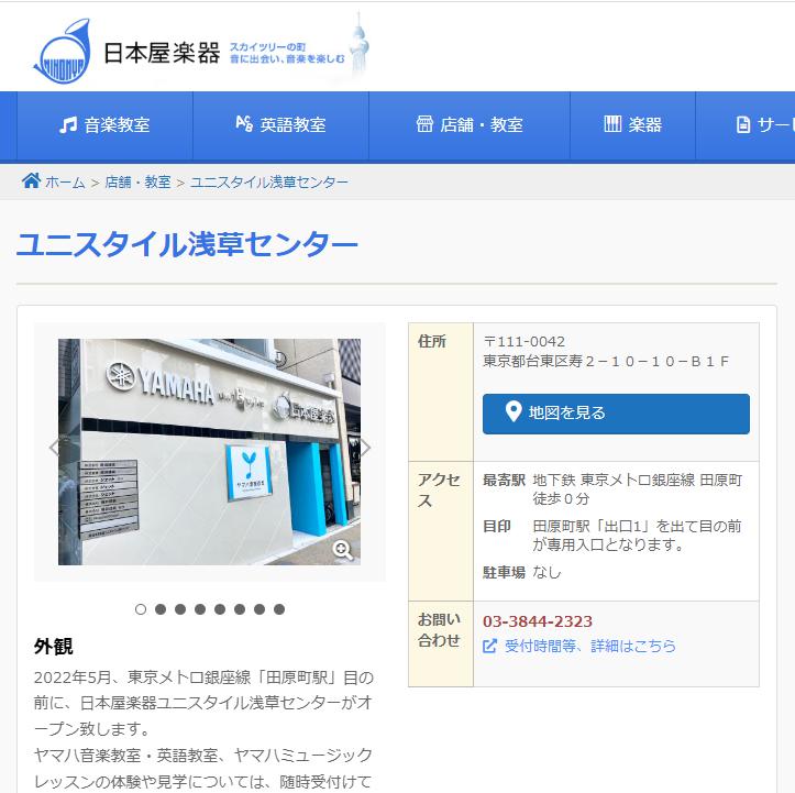 田原町のおすすめピアノ教室・ランキング10位は日本屋楽器 ユニスタイル浅草センターです。