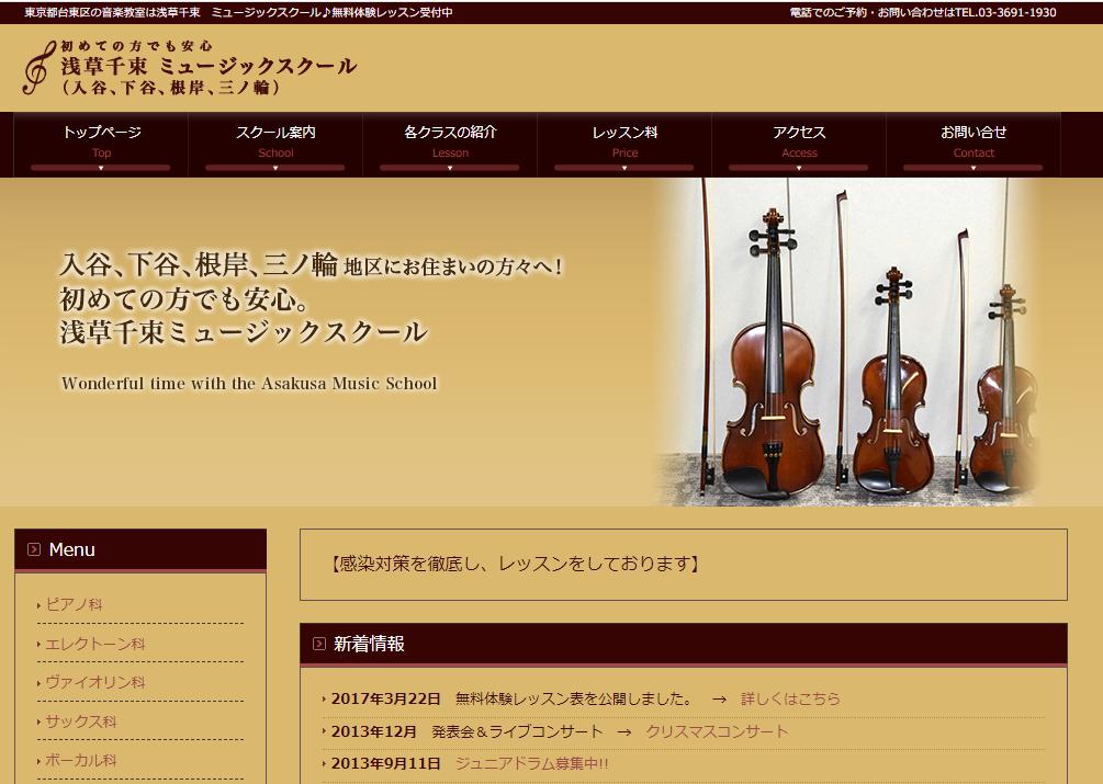 浅草千束ミュージックスクールはピアノを始め、ヴァイオリン、サックス、ギターなど多くの楽器コースを併設している音楽教室。